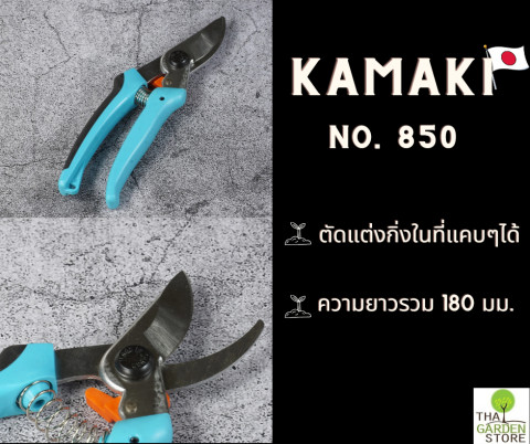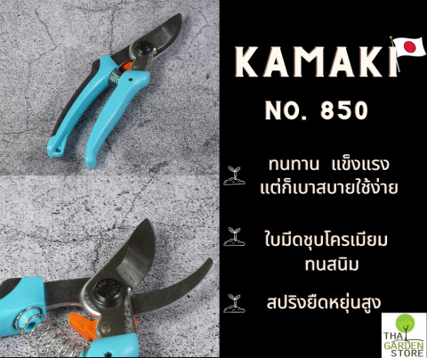 กรรไกร Tamaki 850 ปากกรรไกรทำด้วยไฮคาร์บอน แข็งแรงพิเศษ สามารถตัดแต่งกิ่งในที่แคบๆได้ ใช้ตัดแต่งกิ่ง เก็บเกี่ยวผลผลิต คม ทนทาน รอยตัดคมเฉียบ ใช้ตัดกิ่งขนาดเส้นผ่าศูนย์กลางไม่เกิน 1 เซ็นติเมตร ป็นกรรไกร Made in Japan
